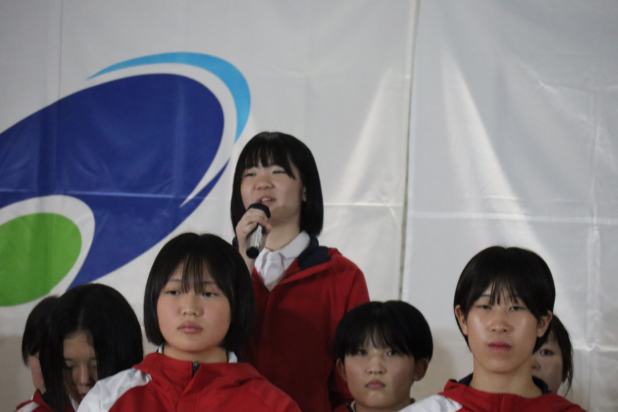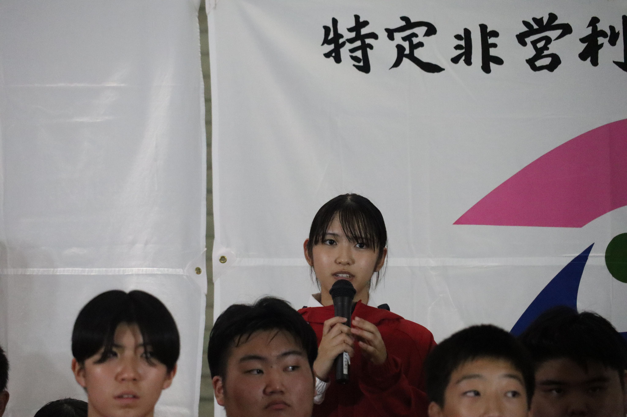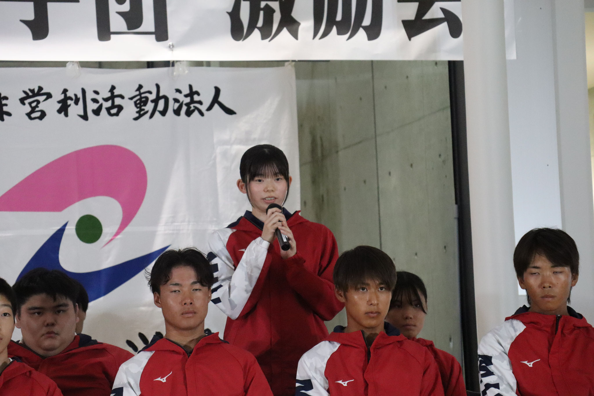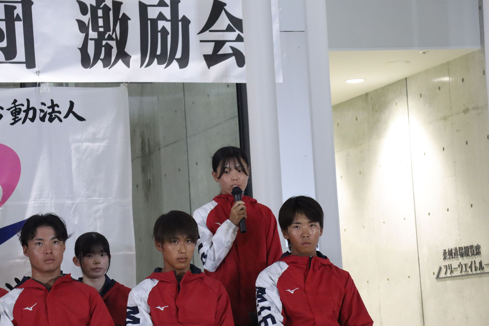 選手を代表し、赤塚 未悠選手【なぎなた(成年女子)】に津市スポーツ協会より激励金をお渡しさせていただきました。