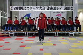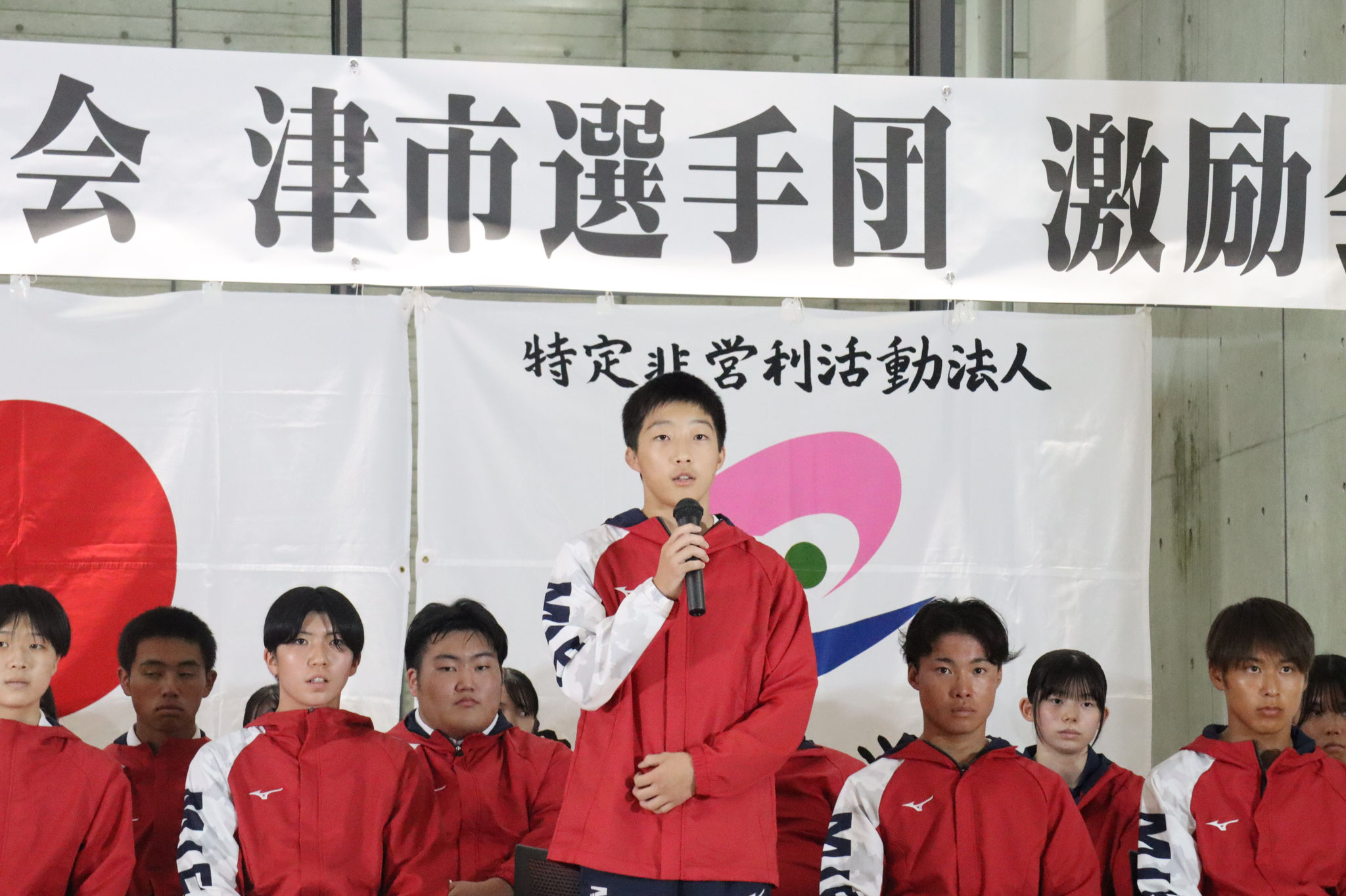 令和7年9月28日(日)~10月8日(水)(会期前実施:9月6日(土)~15日(月)/9月21日(日)~25日(木))に開催されます第79国民スポーツ大会 津市選手団の激励会を9月18日(木)に津市産業・スポーツセンター(日硝ハイウエーアリーナアスリートモール)にて開催いたしました。