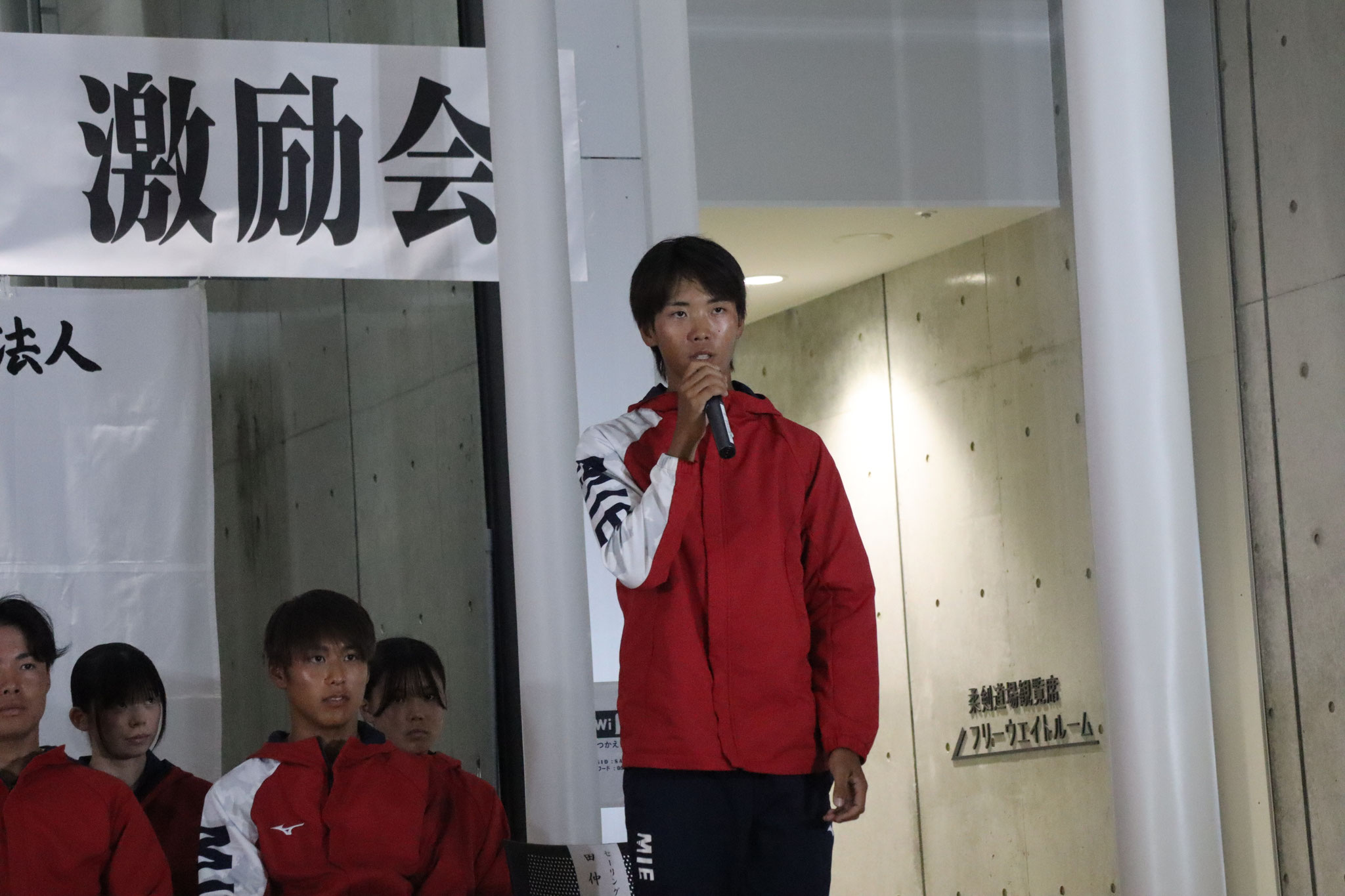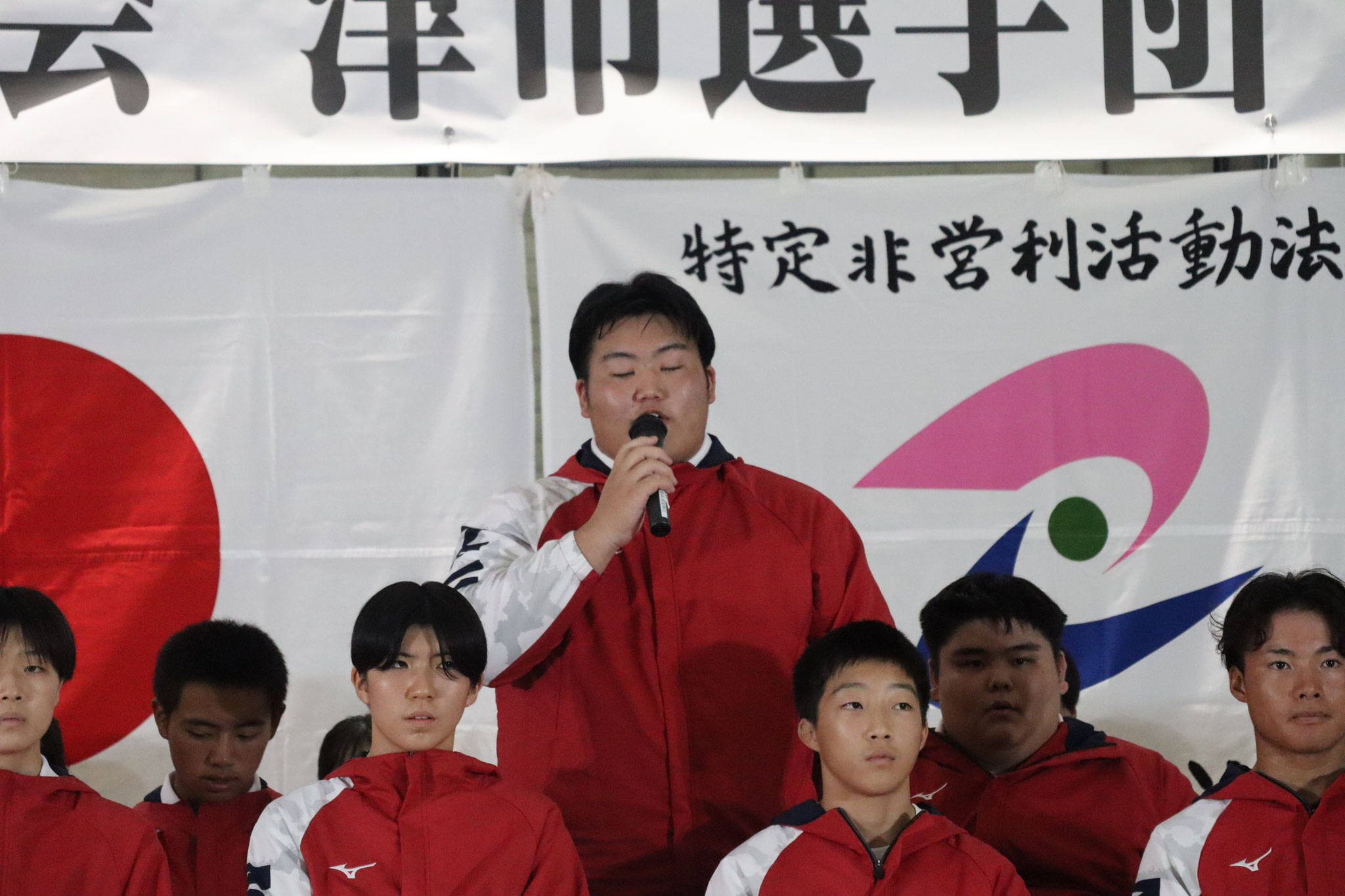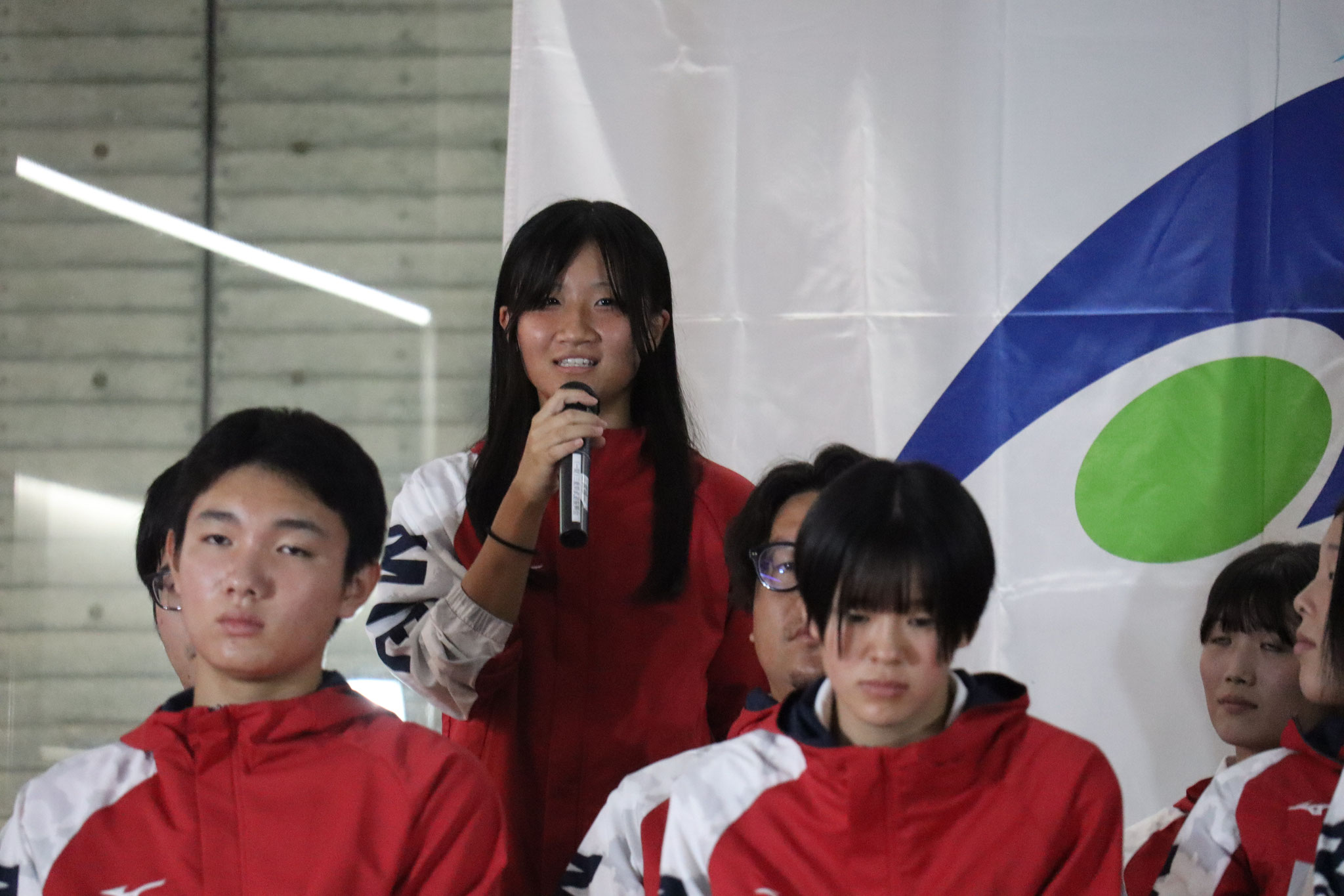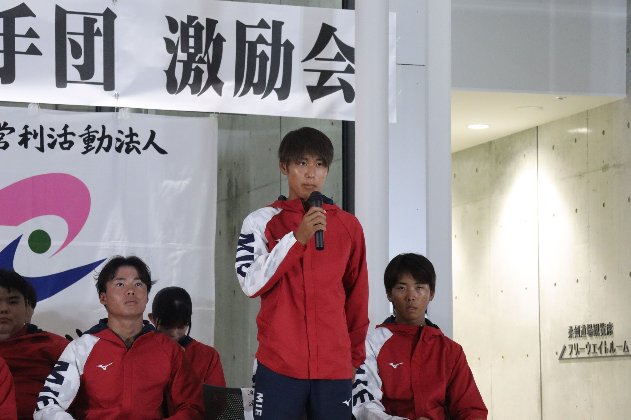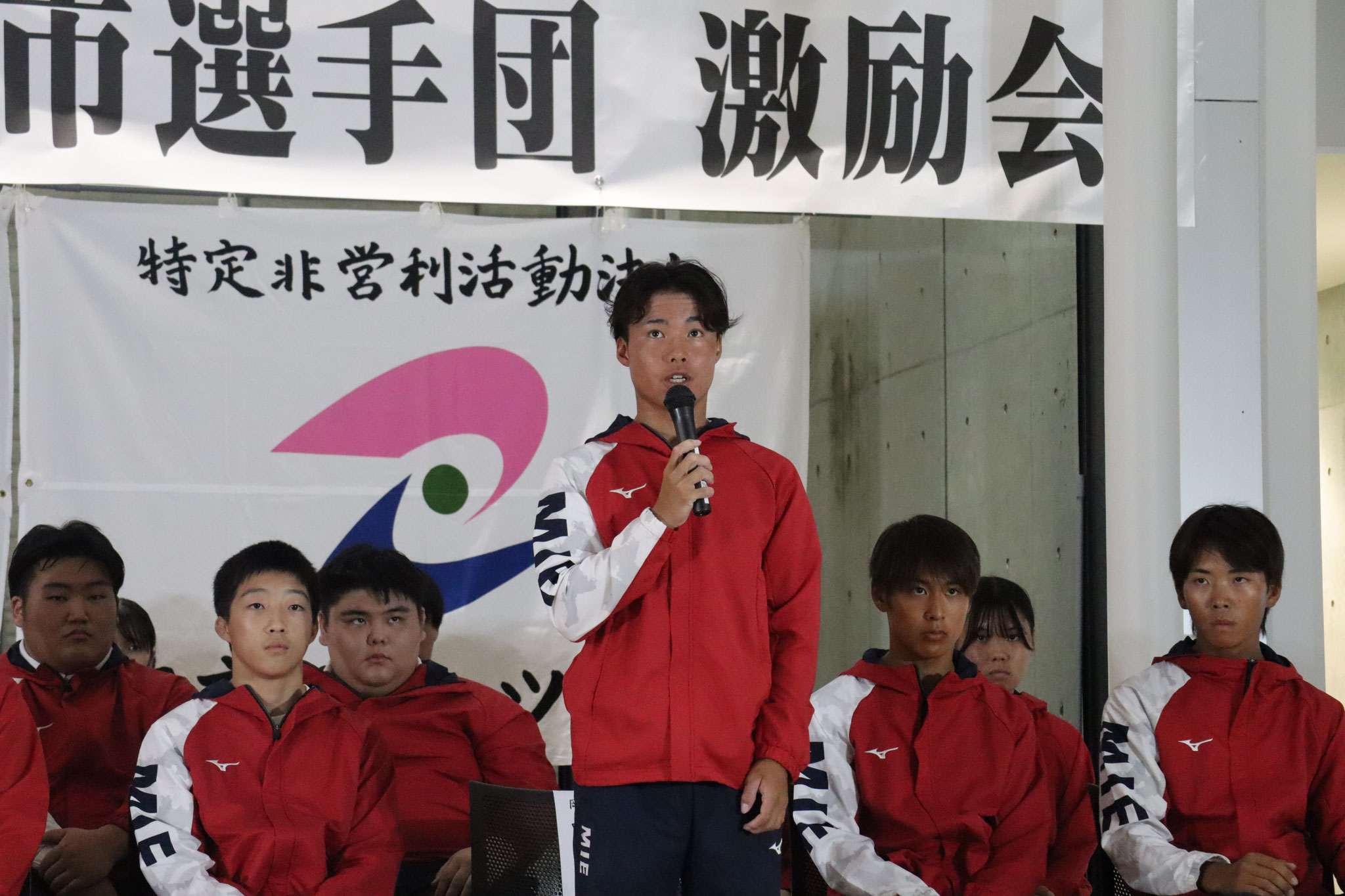 赤塚選手より「私自身、三重とこわか国体に出場する予定でしたが、新型コロナウイルス感染症対策のため、地元開催の三重とこわか国体は、残念ながら、中止となりました。しかし、もう一度、国スポに出場したいと再挑戦すること決意し、今回の国スポの出場を勝ち取りました。またこれまで支えてくださった皆様のためにも津市のために頑張ってきます」と抱負を述べてくれました。